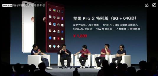 坚果Pro 2特别版采用了与坚果Pro 2相同的设计和工艺,采用 18:9 屏幕比例,屏幕尺寸 5.99 英寸,屏占比高达 81.9%,提供几乎完美的视野。锤子科技在工业设计上坚持“少就是多”的极简主义风格,隐藏了听筒、光线传感器、距离传感器等,为坚果Pro 2打造出最简洁的全面屏正脸与完美“额头”。采用微曲边框设计,运用CNC钻石切割技术塑造细红色腰线与圆形侧边按键,在保证更精致的视觉效果同时,极大提升了机身握感。同时,坚果Pro 2实现了将指纹识别和机身logo合二为一的创新工艺。 在配置上,坚果Pro 2特别版内置 14nm 先进工艺制程高通骁龙 636 八核处理器,搭载高达6GB运存,64GB 机身存储。锤子科技这次选择骁龙636 + 6GB搭配是出于实用性的考虑,手机性能是CPU和运存的综合体现,如果内存不足会导致CPU的性能优势还没有发挥,后台就被占满了,需要消耗CPU用于清理后台。骁龙636的性能优秀,甚至匹敌部分8系旗舰处理器,搭配6GB运存会得到流畅的使用体验。 拍照方面,坚果Pro 2特别版拥有1200万 + 500万双摄,索尼IMX386传感器加持,与Arcsoft的专业算法,经过锤子科技长期的优化调试,在人像、虚化、夜景等多种拍照场景中都能有优良的表现,更延续了惊人的“鸡头级防抖”的惊人视频防抖功能。 坚果Pro 2特别版拥有碳黑色(细红线版)、酒红色和浅金色三个不同配色版本,所有版本均搭配6 + 64GB内存,售价1899元,在618期间还享有多重优惠。 全新8G+512G版坚果R1发布,更强悍更流畅更大空间的旗舰体验 作为锤子科技年度旗舰手机坚果R1,被誉为“次世代旗舰手机,内藏来自未来的电脑”,拥有强悍性能与极速处理能力、旗舰级相机、以及惊艳的工艺外观。坚果R1搭载骁龙845顶级处理器、6GB超大内存起,最高支持8GB运存,最高1TB存储空间。此次全新发布的8G+512G版坚果R1,在手机运行速度上和存储空间上,将满足更多极客需要,带来更加流畅的手机体验,6月14日10:00在京东首发,售价4999元。此外,锤子科技COO吴德周表示,现在坚果R1的产量已经得到解决,多款黑色版本都可现货供应,同时备受大家喜爱的白色版也将在近期供应。