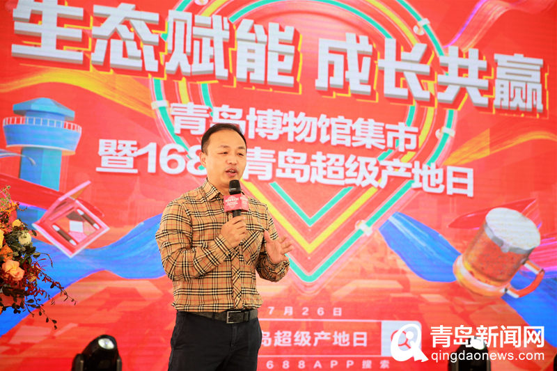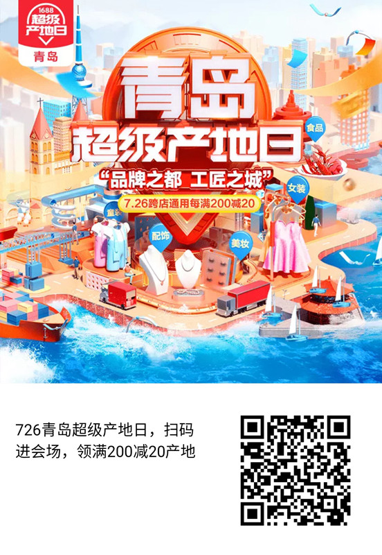 阿里巴巴中国内贸事业部产业带总经理李德庆致辞。 会上,阿里巴巴中国内贸事业部行业专家郑淑文和渠道专家冯泽银分别围绕“青岛产地电商运营”和“1688本地服务生态”进行了分享,介绍了1688平台将为青岛产地商家提供哪些具体的帮助。 线上线下精彩活动引爆“青岛超级产地日” 7月26日,“青岛超级产地日”活动在阿里1688平台上线,精选女装、童装、配饰、美妆工具、食品五大品类,集结近千家青岛产地企业、近万款优选好货,以“源头货,一手价”将青岛制造优质产品呈现给全球经销商。
