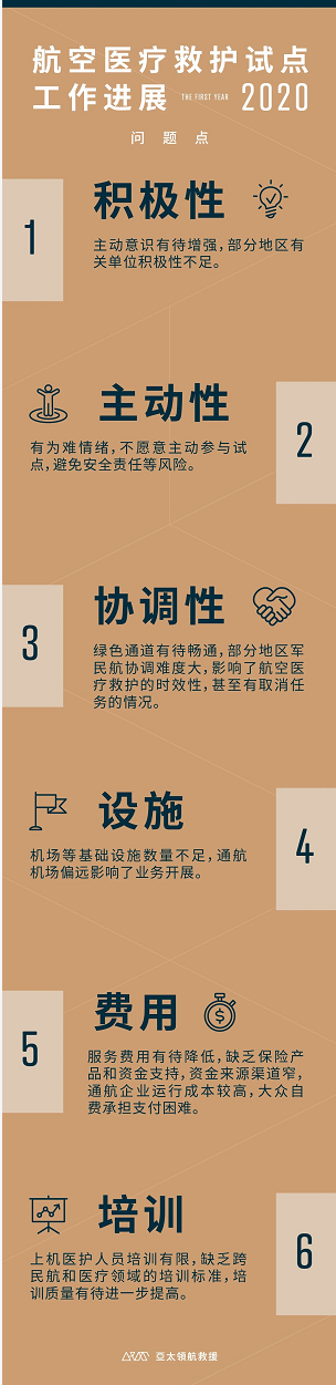 在4月24日召开的航空医疗救护联合试点网络研讨会中,中国民用航空局运输司唐赫处长在发言中引用试点一年来的工作数据,为试点开展和下一步工作给出了明确的参照依据。 一年来航空医疗救护试点工作取得了一些实实在在的成绩,各地区民航管理局监管局密切配合当地卫健和应急管理部门,推进工作;在工作协同方面,一些地方政府和医疗机构购买服务,保险公司和公路管理机构也投入资金开展合作;业务实践方面,通航企业在参与医疗救护工作中进一步发挥了积极作用。 截至2020年3月底试点开展一年时间里,全国共有44家通航企业与317家医疗机构签署协议,救护机队规模达到269架,通过企业培训了培训医务人员1022人次;这些医务人员参与救护飞行477人次,共飞行2232小时,1626架次,救护伤病员1085人。在工作开展过程中,医疗机构与通航企业在实践基础上逐步完善了协同联动机制,形成了规范,为总结经验深化试点打下了扎实的基础。 ![]() 唐赫处长的发言中也梳理了当前试点工作存在的6个方面的问题: ![]() 通航处唐赫处长在总结中提出,以问题目标和结果导向,进一步开展工作的三点建议: 1.加强与相关部门协同联动,加强政策宣贯组织协调调度指导,协调解决现实中问题; 2.加强合作,促进多领域多角度多形式合作,业务中规范流程完善标准加强培训提高安全运营能力,提高救护效率; 3.协会积极主动加强服务,调动社会各方积极性,为行业发展建言献策,加强成果转化。 ![]() |