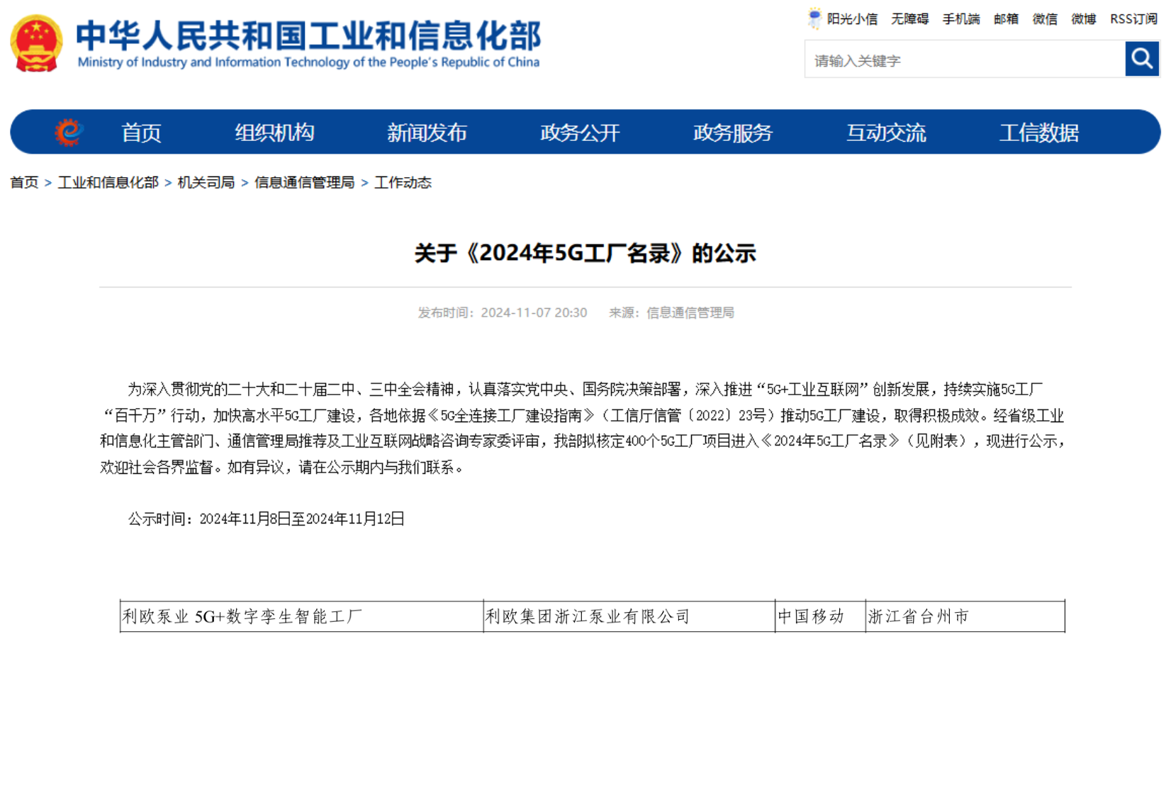 智能工厂是智能制造的核心载体,更是制造业实现数字化转型、智能化升级的关键抓手。不久前,温岭10家企业成功入选首批浙江省先进级智能工厂名单,其中利欧泵业5G +数字孪生智能工厂不仅位列其中,更在去年年底凭借行业领先的技术实践,成功入选国家工信部发布的《2024年5G工厂名录》—— 这一荣誉不仅让其成为水泵行业全国唯一入选案例,更填补了温岭水泵制造业国家级5G智慧工厂示范项目的空白。