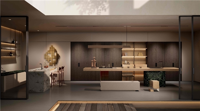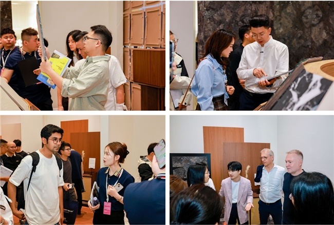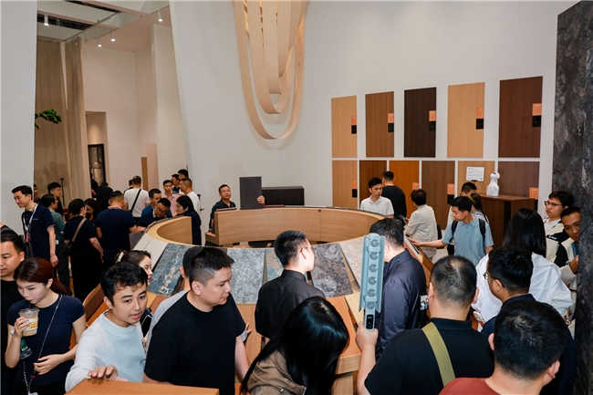 - 2026年广州定制家居展新港展位始终保持高人气 参展回顾:从“一块板”到“一种生活”的完整叙事 本届展会以“定制+好房子”为主题,聚焦住建部“好房子”标准在居住空间中的落地实践。新港则用“仿生科技”的硬核展示和“五境”花色系列的首发,作出了自己的回应。 五境——盛境、雅境、石境、艺境、云境,59款花色,不是按照材质分类,而是按照“情绪”分类。云境是留白,雅境是含蓄,盛境是饱满,石境是沉稳,艺境是先锋……板材不再只是板材,而是空间的五种情绪。 展馆被设计为四幕剧场。“浮光剧场”的入口石境装置、“繁花剧场”的圆形展台、“材艺剧场”的五大风格场景、“和鸣剧场”的荣誉墙与洽谈区——参观者在游走中自然完成了对新港的完整认知:仿生科技是“绿色心脏”,五境美学是外在表达,二者共同回应“好房子”的安全、舒适、绿色、智慧。 从2023年五大风格体系,到2025年唐忠汉大师系列34款高定饰面,再到2026年五境花色,新港用三年时间完成了从“风格覆盖”到“大师联名”再到“东方美学体系化输出”的三级跳。此次参展,正是这一美学升级路径的集中呈现。