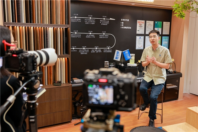 - 新港东方美学设计体系化输出 权威媒体关注:包括“新华网”在内的过百家媒体多角度报道新港 展会期间,新港展位成为媒体关注的焦点之一。 在接受新华网视频采访时,集团总裁魏子铭,东北林业大学教授、新港研究院院长肖少良分别从战略布局与技术研发维度,解读仿生科技如何为“好房子”提供绿色底座。 网易家居总编辑胡艳力、泛家居圈创始人周忠两位行业资深媒体人到访探展。胡艳力从设计美学视角,解读五境如何让板材拥有空间情绪;周忠从产业战略视角,剖析新港从“技术领先”到“技术美学双轮驱动”的品牌升维逻辑。 五位家居主编联袂推荐五境系列:环球网家居李家燕(雅境)、新浪家居叶玲菊(云境)、网易家居王傅蓉(盛境)、定峰汇杨峰(石境)、今日家居高单单(艺境),以“五境之美,源于仿生之芯”为核心表达,分享了对“五境”花色的理解与感知。
