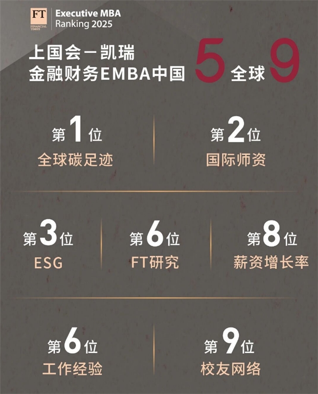 在高级管理人员工商管理硕士EMBA教育领域,第三方权威排名始终是衡量项目含金量与品牌影响力的重要标尺。在英国《金融时报》发布的2025年全球EMBA 排名中,由上海国家会计学院与亚利桑那州立大学凯瑞商学院合作举办的上国会-凯瑞金融财务EMBA项目表现亮眼,位列全球第9,中国第5,再次印证了其在国内高端金融财务EMBA在职研究生教育领域的领先地位。 ![]() 排名的优异表现,根植于两所合作院校深厚的办学实力。中方合作方上海国家会计学院是财政部直属的国家级高端财会人才培养基地,以“不做假账”的校训精神与严谨学风著称,被誉为财会从业者的“精神家园”。亚利桑那州立大学凯瑞商学院则通过AACSB权威认证,跻身全美商学院30强。更值得关注的是,亚利桑那州立大学在U.S. News & World Report“最佳大学”评选中,已连续十年蝉联全美最具创新大学榜首,这一独特的创新基因,为金融财务EMBA项目注入了区别于传统商学院的活力与前瞻性。完成学业后,学员可获颁亚利桑那州立大学硕士学位证书、教育部留学服务中心国外学历学位认证书、上海国家会计学院财务总监资格培训证书。国际名校学位与国家权威认证的双重背书,为学员在职业晋升与全球职业发展中提供了坚实的资质保障。与此同时,该项目无须撰写毕业论文,进一步降低了在职深造的时间与精力负担,让高管群体能够更专注于实战能力的提升。 ![]() 除了全球EMBA 排名,上国会-凯瑞金融财务EMBA项目还在多个关键维度上展现出强劲竞争力。其中,国际师资比例位列国内第2位,体现了项目在全球优质教育资源整合方面的突出能力;在ESG与可持续发展领域,项目同样走在前列,ESG与零碳教学指标高居国内第3位,反映出项目课程对社会责任与可持续发展的深度融入。在全球资本市场日益重视ESG评价体系的背景下,这一课程布局帮助学员在绿色金融、碳中和战略等前沿领域建立先发优势。 ![]() 此外,项目在FT研究排名中位列国内第6位,显示出合作院校在教学科研与知识创新层面的深厚积淀;在直接反映学员职业发展回报的薪资增长率指标上,项目位居国内第8位;而校友网络质量排名则位列国内第9位,量化证明了项目所构建的精英圈层价值。这一系列排名数据,从师资、课程、研究、职业回报到校友生态,多维度勾勒出一个高水平金融财务EMBA项目的完整画像。 排名数据中,薪资增长率指标的含金量尤为值得关注。对于金融财务EMBA学员而言,学费投入的背后是对职业发展规划加速度的期待。上国会-凯瑞金融财务EMBA项目在这一指标上位列国内第8位,回应了市场对金融财务EMBA教育投资回报率的核心关切。这一增长背后,是项目围绕金融财务和服务创新两大主题所构建的系统化课程体系——从公司金融、投资与投资组合管理到财务报表分析与股东价值创造,从领导力创新到企业数字化战略,每一门课程都精准指向学员在战略决策与资本运作中的实际能力提升,为其长远的职业发展规划提供系统性赋能。 排名数据虽能提供重要的参考坐标,但金融财务EMBA教育的真正价值终归要落实到学员的实战能力提升。上国会-凯瑞金融财务EMBA项目自创办以来便确立了“务实”的办学基调,除常规授课外,通过案例分析、企业走访、高管对话、角色扮演等多元教学形式,推动学员在思维碰撞中实现管理智慧的提炼与升华。项目每年组织学员赴美或赴新加坡访学,与高管面对面交流,零距离感受全球市场的运作逻辑。 ![]() 作为国内首个聚焦金融和财务管理方向的EMBA项目,上国会-凯瑞金融财务EMBA正持续为中国经济高质量发展输送兼具专业深度、战略视野与创新精神的高端管理人才。目前,该项目第24期招生已全面启动,在职免统考不出境,双证保障更安心,为资深管理者提供了高效便捷的深造通道。 |