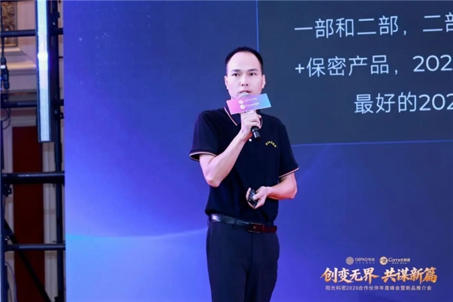 科密渠道部总监 南朝晖 歌派渠道部副总监陈绍回顾了歌派品牌“前途光明、道路曲折”的发展历程,明确了专注政府采购与保密市场的战略方向,与公司多个部门协同作战,共拓歌派的美好未来。他提出“一省一代理”政策保障代理商独家权益,希望代理商深耕本地政采市场,并以“保密室标准化建设方案”为核心,依托几十款保密认证产品,抢占超15亿的保密硬件市场。他指出,2026年歌派已成功入围多地框架协议采购,号召代理商把握政策红利,乘势而上!