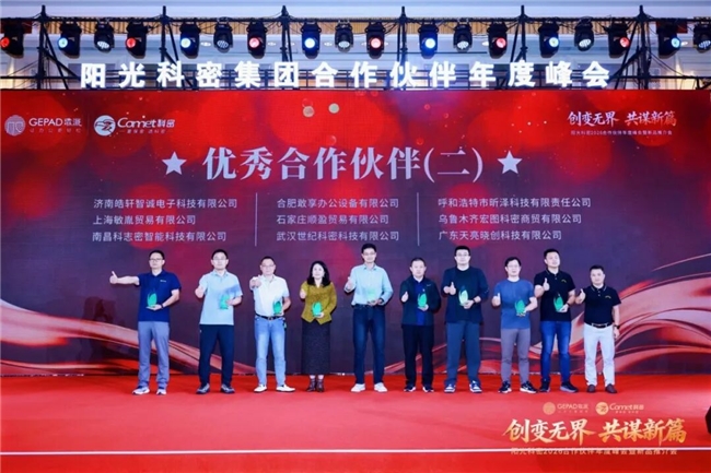 歌派渠道部副总监 陈绍 阳光科密的辉煌今天,离不开全国合作伙伴们多年风雨同舟的陪伴与做出的卓越贡献。为表达感恩,铭记每一次携手、回馈每一份信任,阳光科密开启了年度优秀合作伙伴颁奖盛典,将峰会气氛推向高潮!