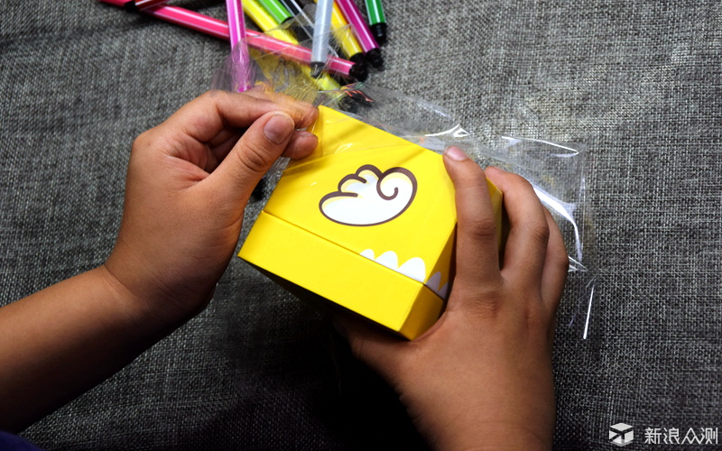 ![]() 家里的宝贝迫不及待的拆开了包装,包装盒设计成上翻盖样式,使小朋友也能轻松打开,有一种礼品盒的感觉,开盖处就像是巴迪龙的大嘴巴,张开嘴巴360儿童手表便呈现在宝贝面前。