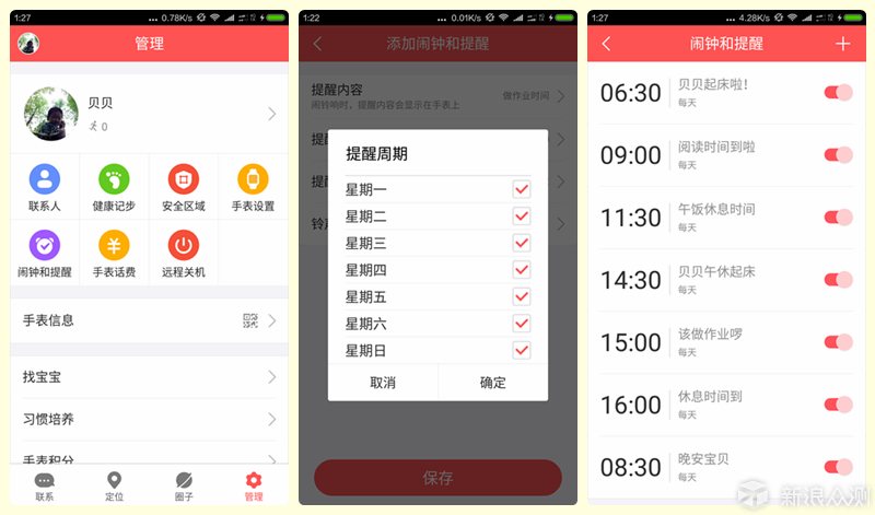 既然是手表那么计时和闹钟功能那也是必不可少的了,依然通过手机APP来设置,设定宝贝的起床时间,写作业时间、看电视时间等等。可以使用闹钟功能培养孩子的良好作息习惯了,对于快要放暑假的熊孩子来说再实用不过了。并且还能了解到孩子一天基本的运动量,设个闹钟叫他锻炼身体啦。