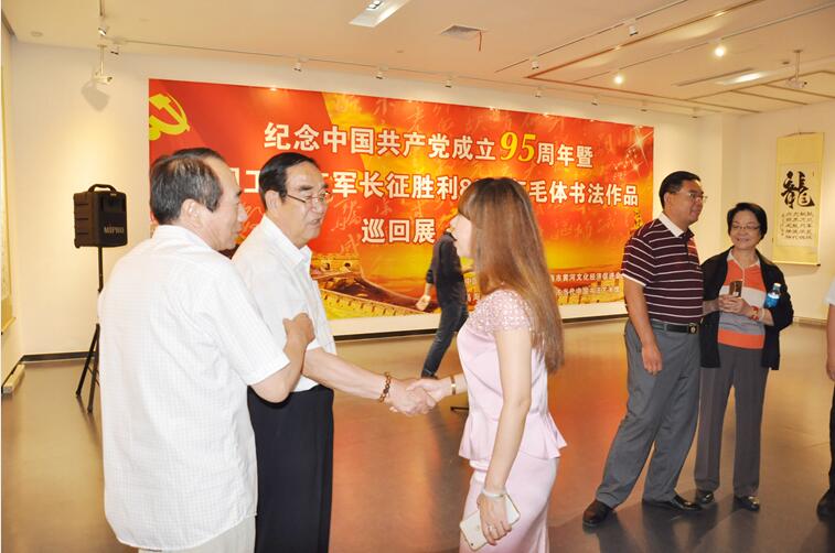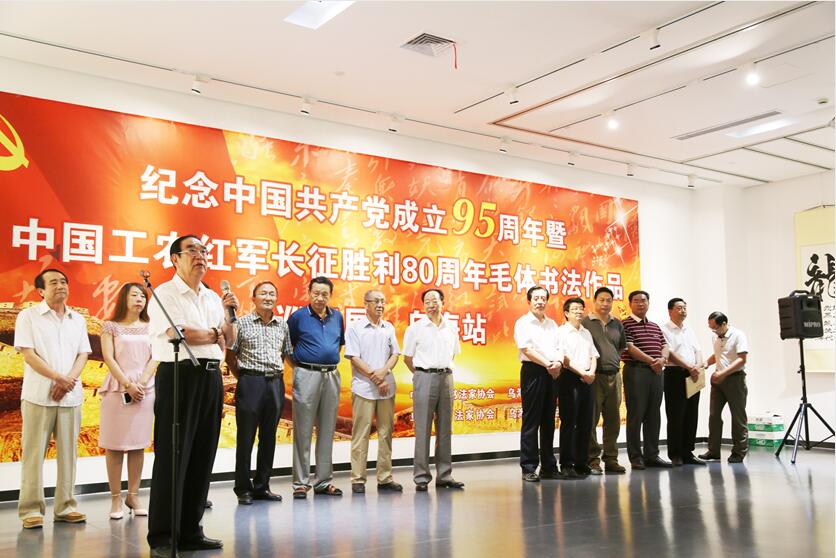 最后,由乌海市政协原副主席、黄河文化经济促进会会长许惠和宣布“纪念中国共产党成立95周年、中国工农红军长征胜利80周年毛体书法作品六省巡回展乌海展”开幕!